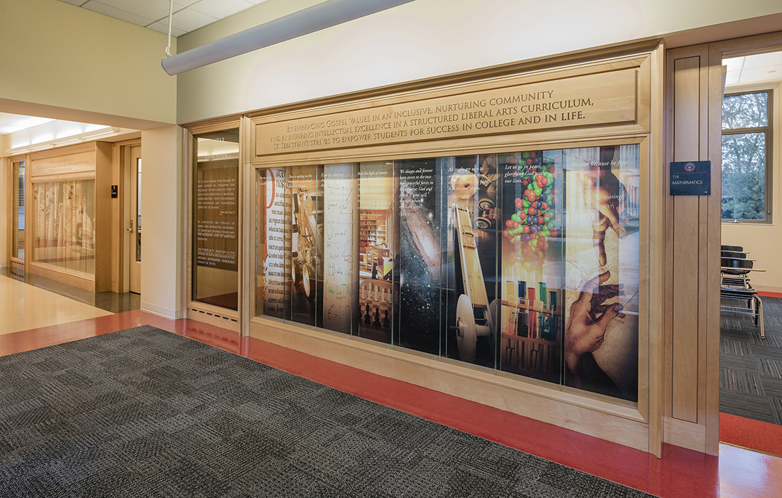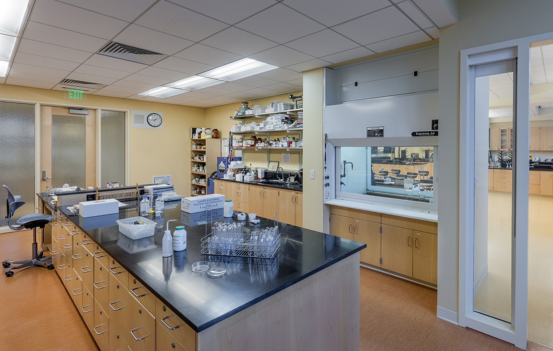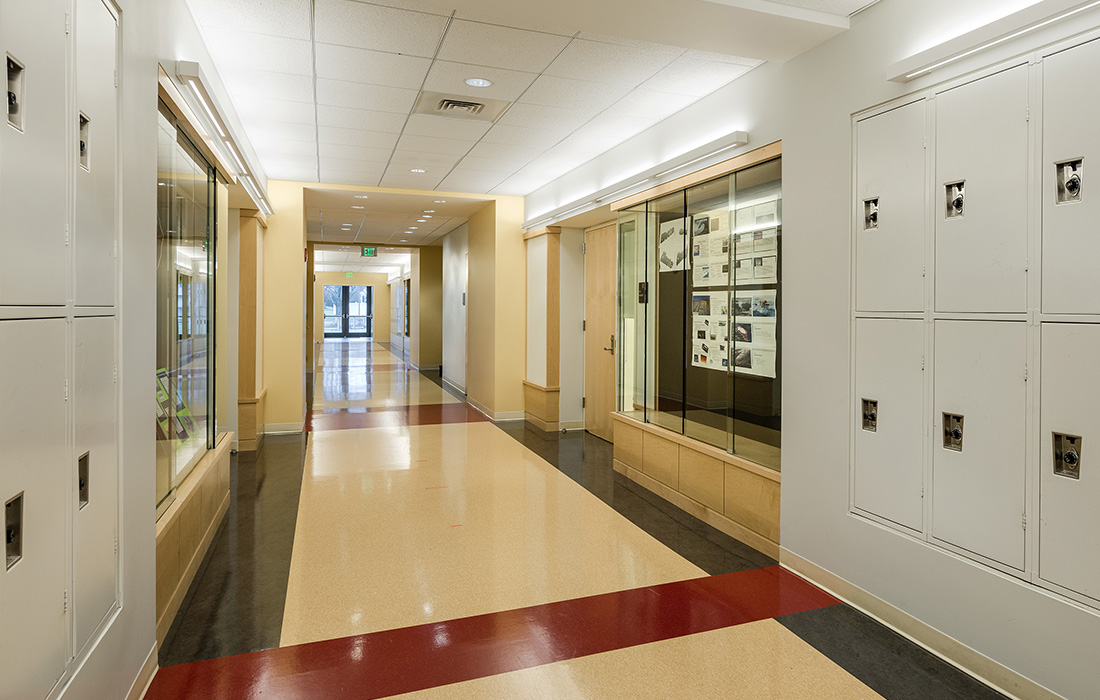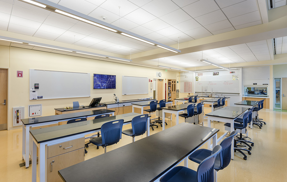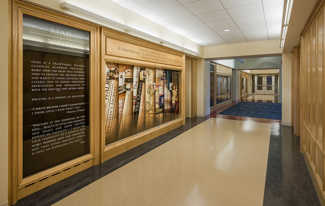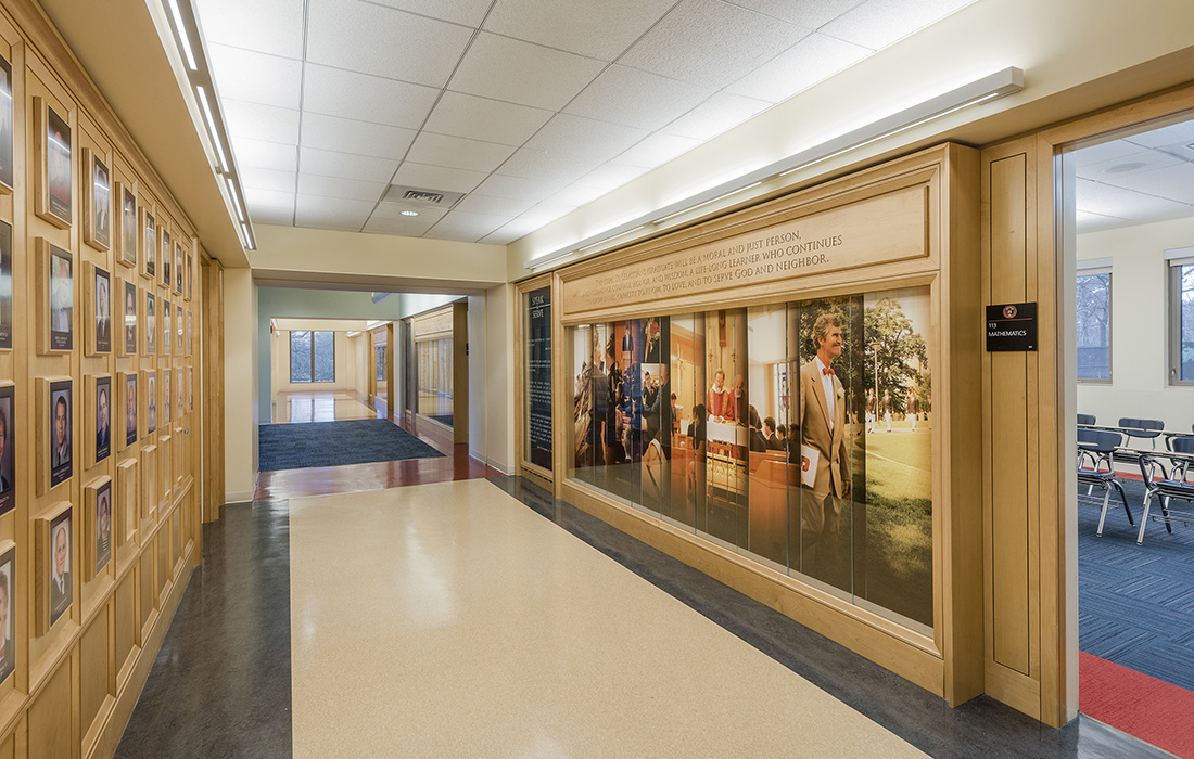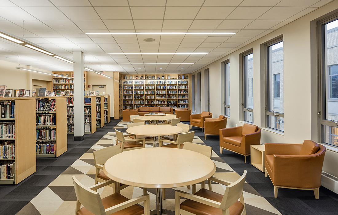 This major expansion of the Academic Building by the addition of the Science, Mathematics & Library Center provides 33,000 SF for the teaching of science and mathematics, independent studio spaces for innovation in engineering, an expansion of the existing library with a Reading Room, a Seminar Room dedicated to the study of science and ethics, a computer lab for mathematics and science, and an open study for collaborative student work. Like the Arts Building which extends the campus plan along the riverfront, the Science, Mathematics and Library Center frames the campus on its east side, encloses it along the route 128 right-of-way, and incorporates St. Bartholomew’s Church in the overall campus plan. In 2019, we developed studio spaces included in the original program for independent work to create a new Innovation Lab.
