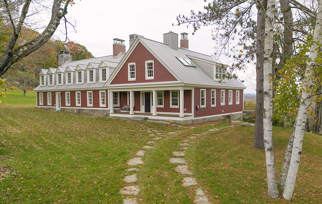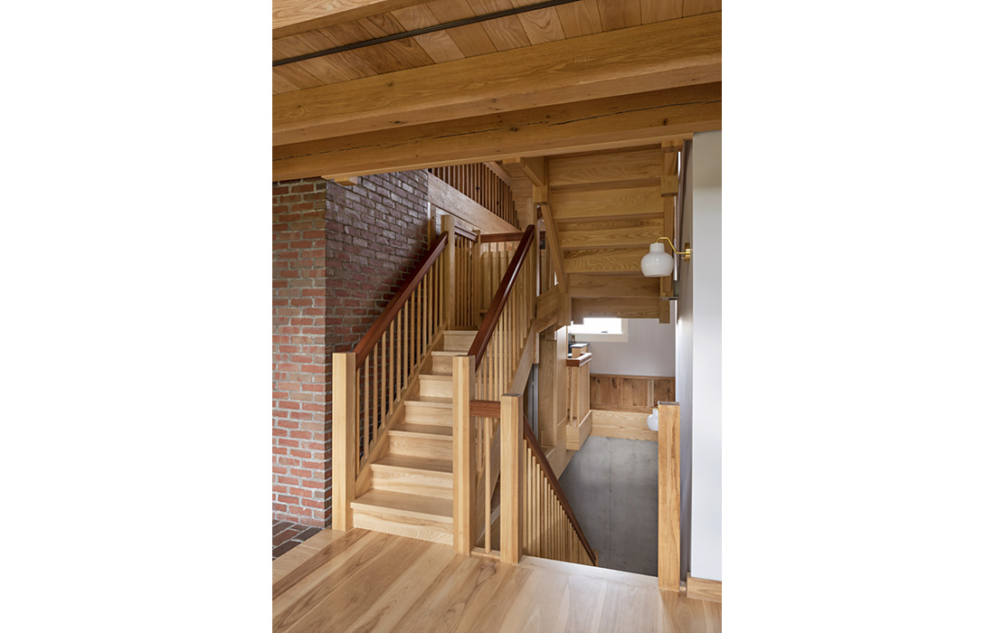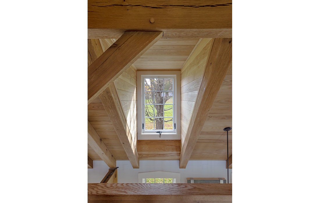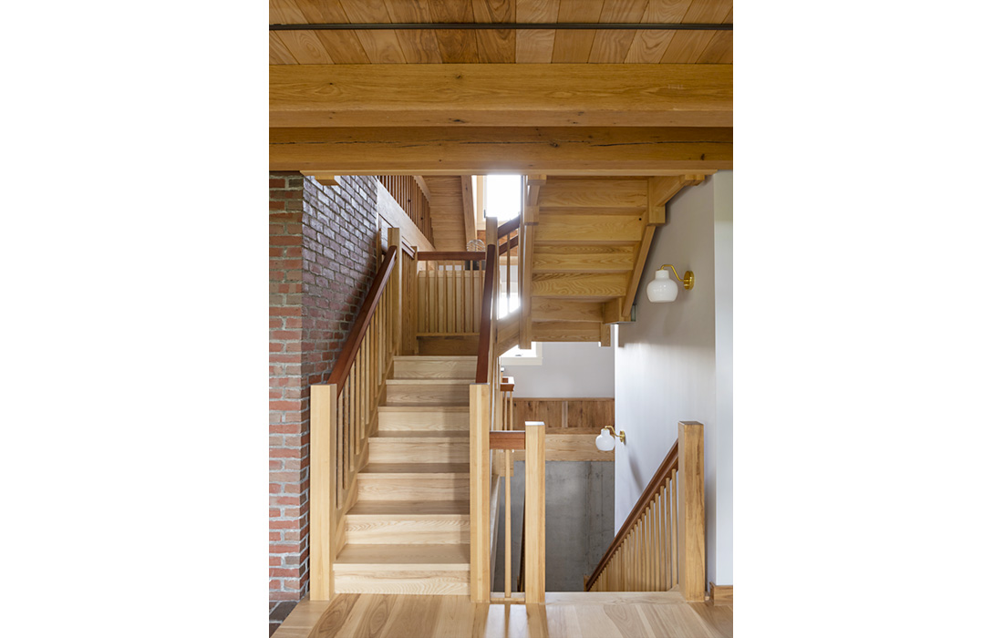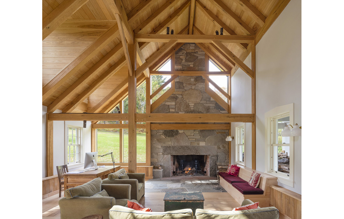 The original house at this New Hampshire farm was built in 1796, expanded with an ell with a kitchen and shed, and modified over the two centuries of continuous use as farmhouse.  The original house, increasingly fragile over time, had survived with its timber frame and sheathing intact while the ell had entirely deteriorated when its owners decided to preserve and renew it as a family home.  This new home captures the feeling of the original by a focus on the beauty and straightforward poetic of simple things enduring through generations of weather and use, and an understanding that modesty is the key to perpetuating the spirt of this place.  The design of the new timber framed ell is based in uses of materials, scale and proportion which are common with those of the original structure so that the history of the place is vivid in the experience of the new home.