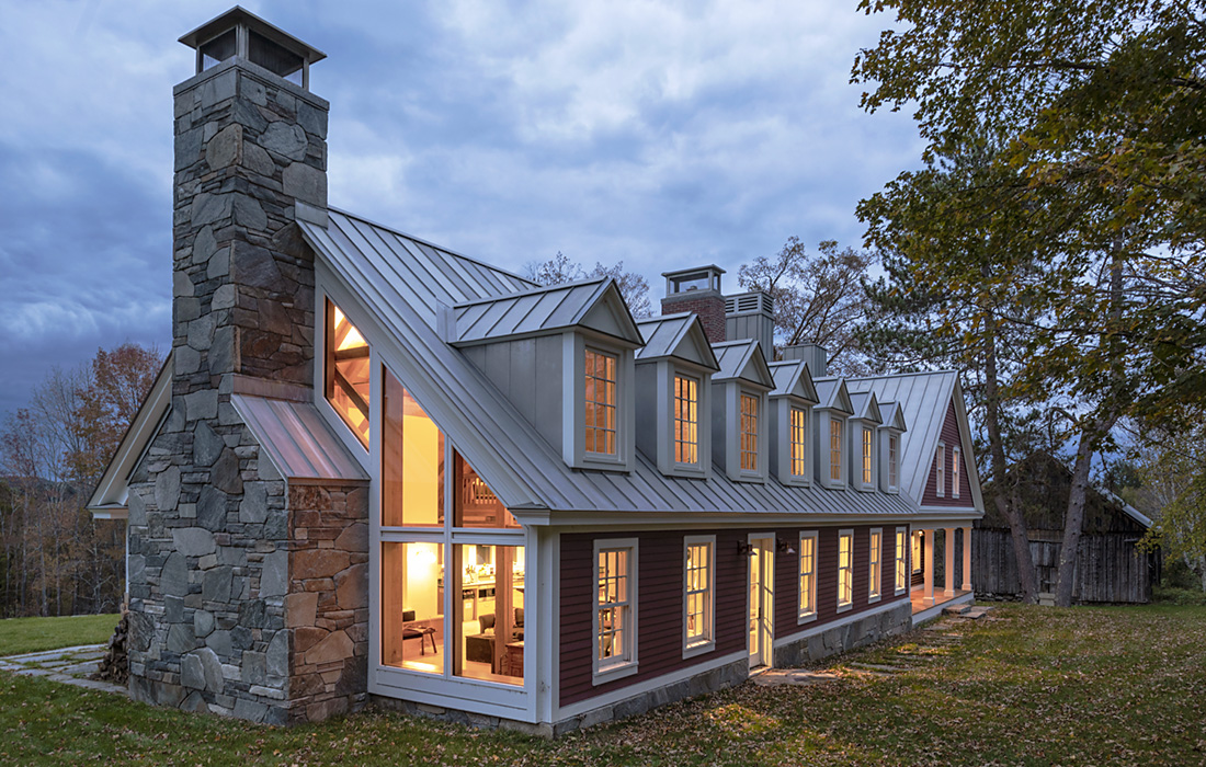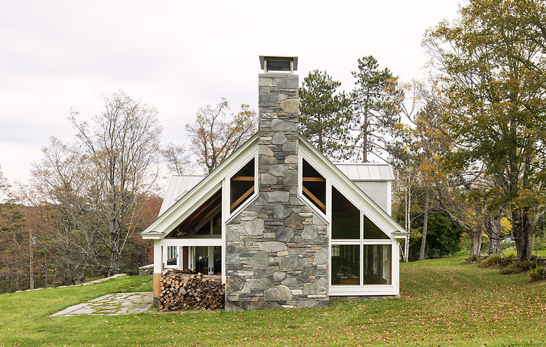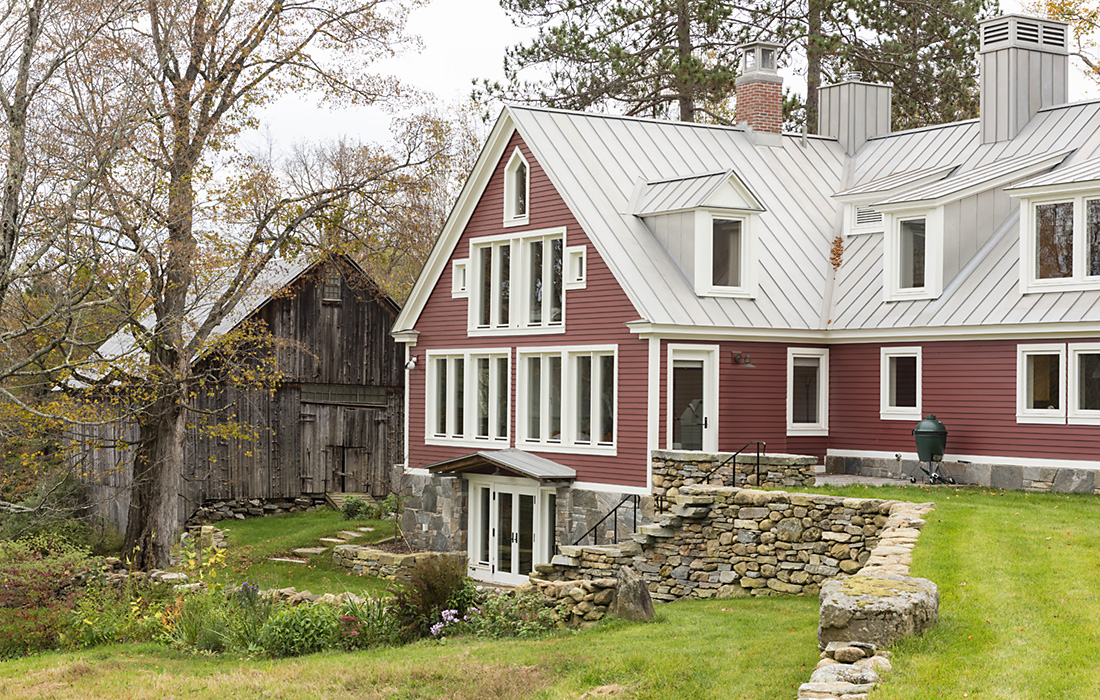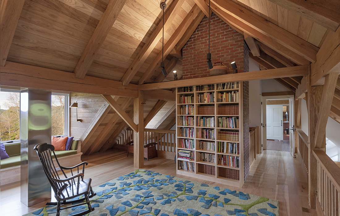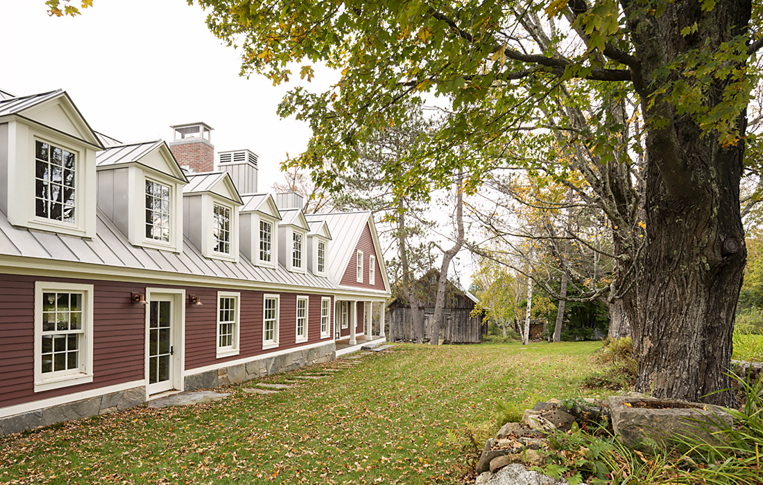 The original house at this New Hampshire farm was built in 1796, expanded with an ell with a kitchen and shed, and modified over the two centuries of continuous use as farmhouse.  The original house, increasingly fragile over time, had survived with its timber frame and sheathing intact while the ell had entirely deteriorated when its owners decided to preserve and renew it as a family home.  This new home captures the feeling of the original by a focus on the beauty and straightforward poetic of simple things enduring through generations of weather and use, and an understanding that modesty is the key to perpetuating the spirt of this place.  The design of the new timber framed ell is based in uses of materials, scale and proportion which are common with those of the original structure so that the history of the place is vivid in the experience of the new home.