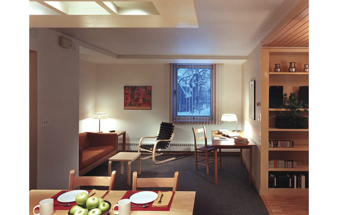 The Renovations of the Center for the Study of World Religions, an existing residential complex for scholars engaged in the comparative and historical study of religion consists of two phases. The first provided a new conference and study center to serve as the focus for common research interests and colloquia; and a redesign of an existing residence to serve as a prototype for future rehabilitation of the complex. The second renovated the scholars’ apartments, building upon the knowledge gained in the first phase.